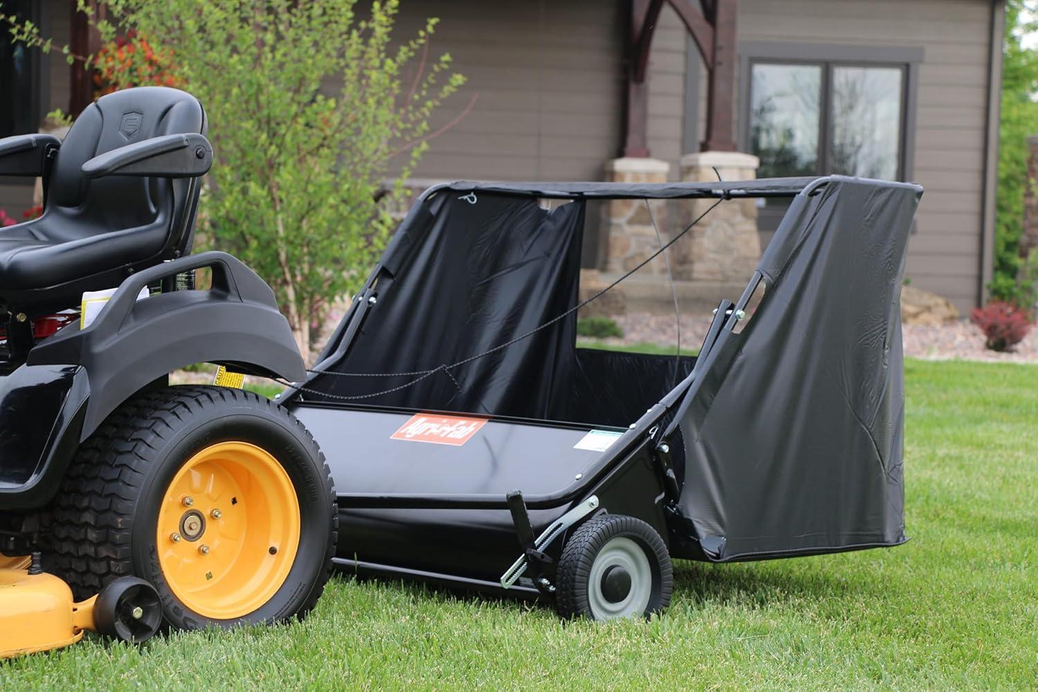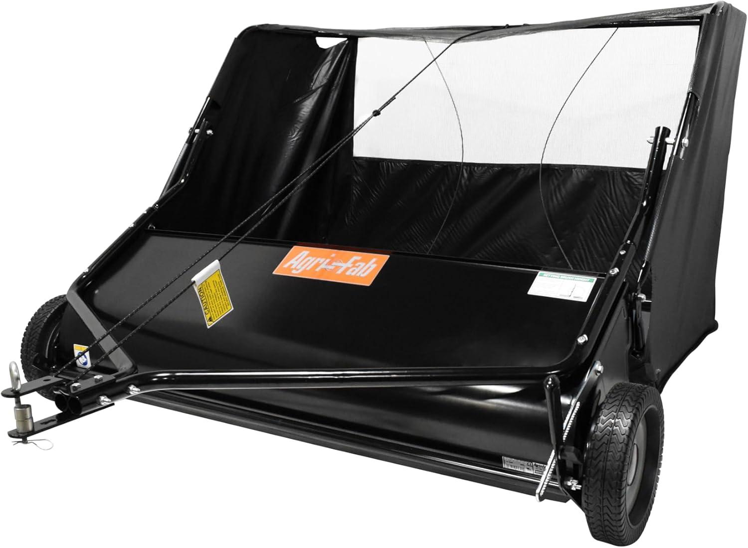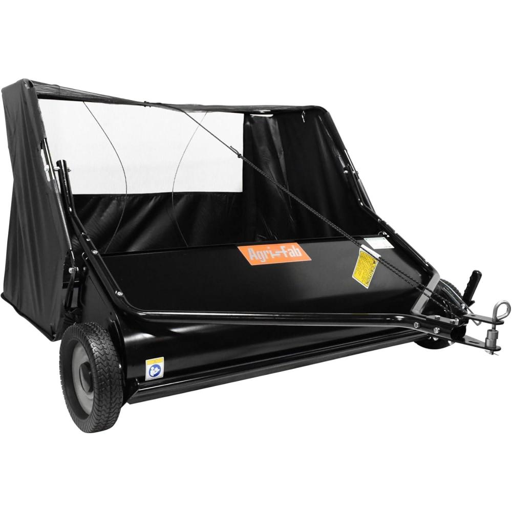 The Agri-Fab 58” HD Lawnsweeper (Model 45-0642) makes yard cleanup faster and easier with a high-capacity 26 cu. ft. hopper and a solid brush shaft that drives all brushes evenly—no matter which way you're turning. Its wide 50″ sweep path, 10″ brushes, and adjustable height make quick work of leaves, clippings, and debris.