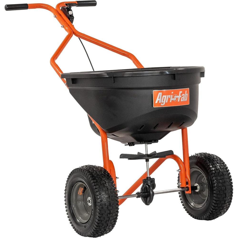 From fertilizer to seed to ice melt, the Agri-Fab 85 lb. Push Broadcast Spreader is the right spreader for your job. This push spreader features a durable plastic hopper and closure plate that resists corrosion for long-lasting use. The positive flow adjustment design ensures accurate spread patterns up to 10 ft. wide.