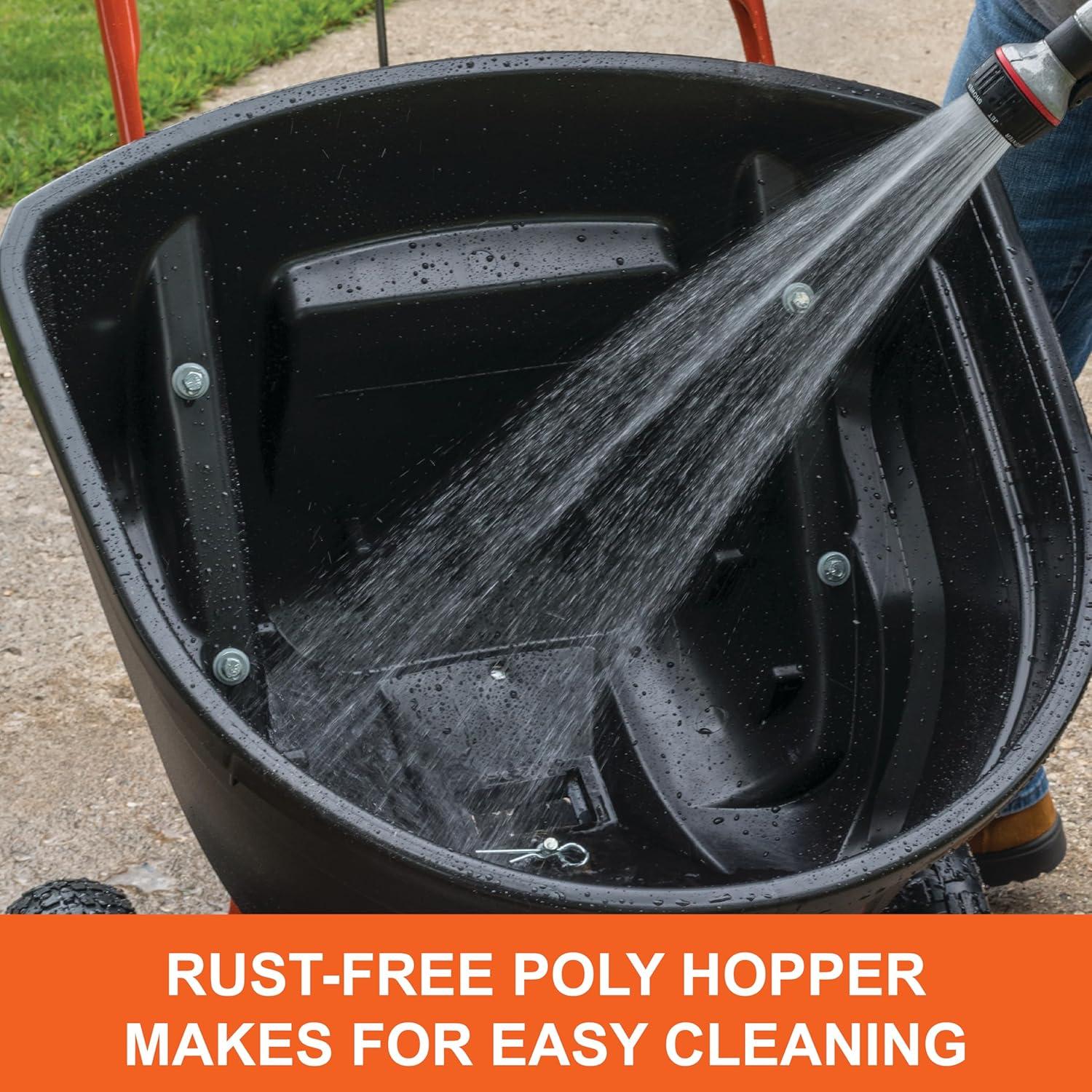 Easy to clean, Rustproof poly hopper and spreader plate increases product life